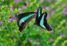 青带凤蝶Graphium sarpedon ,又名青凤蝶,是最普遍的中型凤蝶,飞行速度很快。青带凤蝶的翅膀中央有许多浅蓝色的斑点,很整齐地排列成一条直线。这些斑点由上而下逐渐变大,就像一条青色的带子。全部>>