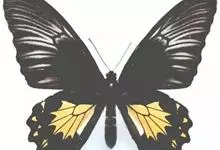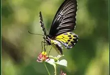 金裳凤蝶是凤蝶科、裳凤蝶属的动物。金裳凤蝶身体呈黑色,头、颈和胸侧有红毛,腹部有黑黄两色相间条纹,雄蝶前翅黑色,具黑天鹅绒光泽,各脉两侧灰白色,后翅金黄色,各室外缘有等腰三角形黑斑1枚,斑内侧有晕,…全部>>