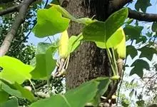 鹅掌楸 Sarg.),别名马褂木、宝剑木、九层皮,为木兰科鹅掌楸属落叶大乔木。小枝灰色或灰褐色;叶马褂状,叶柄长4-8cm;花杯状,浅黄色;果实为聚合果,顶端钝或钝尖;花期5月,果期9~10月。…全部>>