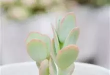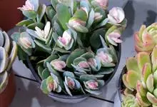 唐印为景天科伽蓝菜属的多年生肉质草本植物。植株中型,株高50厘米,宽20厘米,多分枝;叶片肉质,对生,卵形,全缘,先端钝圆,叶片淡绿色至灰绿色,表面被有厚厚的白粉,光照充足时,叶缘呈红色;圆锥花序,…全部>>