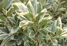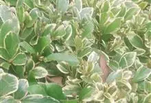 金边黄杨是卫矛科卫矛属的常绿灌木或小乔木,金边黄杨小枝略为四棱形,枝叶密生;单叶对生,倒卵形或椭圆形,边缘具钝齿,表面深绿色,有光泽;聚伞花序腋生,具长梗,花绿白色;蒴果球形,淡红色;花期5~6月。…全部>>
