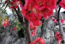 贴梗海棠Nakai)是蔷薇科、木瓜海棠属植物。落叶灌木,高达2米,枝条直立开展,有刺。叶片卵形至椭圆形,稀长椭圆形,长3-9厘米,宽1.5-5厘米。花先叶开放,3-5朵簇生于二年生老枝上。…全部>>