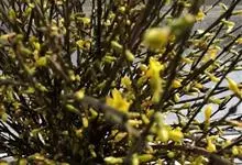 迎春花,木犀科素馨属的多年生木本植物,小枝细长直立或者呈拱形下垂;叶片呈卵形或椭圆形;花单生于叶腋处,苞片呈披针形或椭圆形,花冠为金黄色,花瓣通常为倒卵形或椭圆形;花期在6月。…全部>>
