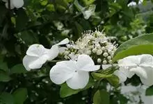 蝴蝶戏珠花 Miq.)是荚蒾科荚蒾属植物。落叶灌木,高达3米;当年小枝浅黄褐色。叶较狭,宽卵形或矩圆状卵形,有时椭圆状倒卵形。花序直径4-10厘米,外围有4-6朵白色、木型的不孕花。果实先红色后变黑色,…全部>>