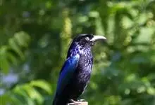 发冠卷尾是中型鸟类,体长28-35厘米。通体绒黑色缀蓝绿色金属光泽,额部具发丝状羽冠,外侧尾羽末端向上卷曲。栖息于海拔1500米以下的低山丘陵和山脚沟谷地带,多在常绿阔叶林、次生林或人工松林中活动。…全部>>