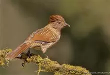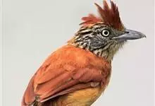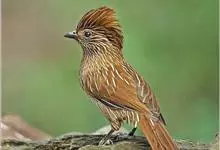 条纹噪鹛是画眉科、噪鹛属中型鸟类,体长28-32厘米。头具短的羽冠,上体栗褐色,飞羽外翻蓝灰色。下体棕栗色,腹以后转为褐白色。除飞羽和尾羽外,所有上、下体羽均具白色羽干纹。极为醒目。野外特征明显,…全部>>