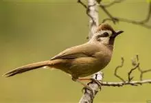白颊噪鹛是雀形目噪鹛科噪鹛属鸟类,又称土画眉、小画眉、小噪鹃。成鸟额至头顶栗褐色,长眉纹、眼先和颊纹棕白色,眼后至耳羽深褐色,…全部>>