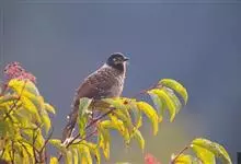 大噪鹛:中型鸟类,体长32-36厘米。额至头顶黑褐色,背栗褐色满杂以白色斑点,斑点前缘或四周还围有黑色。初级覆羽、大覆羽和初级飞羽具白色端斑。尾特长,均具黑色亚端斑和白色端斑。颏、喉棕褐色,…全部>>