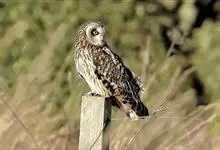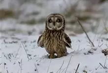 短耳鸮又名小耳木兔、田猫王、夜猫子等,是鸮形目鸱鸮科耳鸮属中小型猛禽动物。成鸟面盘显著,眼周黑色;眼先及内侧眉纹灰白色,面盘余部棕黄色杂以黑色细羽干纹;耳簇羽短小而几乎不外露,…全部>>