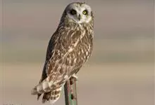 短耳鸮又名小耳木兔、田猫王、夜猫子等,是鸮形目鸱鸮科耳鸮属中小型猛禽动物。成鸟面盘显著,眼周黑色;眼先及内侧眉纹灰白色,面盘余部棕黄色杂以黑色细羽干纹;耳簇羽短小而几乎不外露,…全部>>