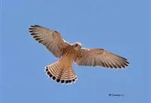 红隼:是隼科、隼属的小型猛禽之一。体重173-335克,体长305-360毫米。翅狭长而尖,尾亦较长,外形和共同爪隼非常相似。雄鸟头蓝灰色,背和翅上覆羽砖红色,具三角形黑斑;腰、尾上覆羽和尾羽蓝灰色,…全部>>