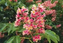 红花七叶树是七叶树科七叶树属植物,落叶乔木。树高可达15-20米,树冠伞形,干形挺拔。小枝粗壮,栗褐色,光滑无毛。掌状复叶小叶通常5枚,成树5-7枚,无柄,叶片倒卵形至长椭圆形,边缘有不规则重锯齿。…全部>>