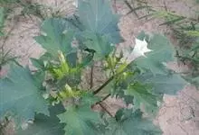 曼陀罗,茄科曼陀罗属一年生大型草本植物,全株光滑。有臭气;叶呈广卯形,边缘具不规则波状浅齿裂;花单生于枝杖间或叶腋,直立,有短梗;花萼是筒状裂片三角形,颜色为白色或淡紫色;果实为蒴果卵状,…全部>>