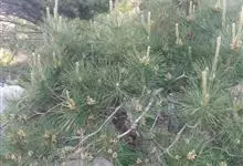 偃松 Regel)是松科松属植物。灌木,高达3-6米,树干通常伏卧状,基部多分枝,旬伏的大枝可长达10米或更长,生于山顶则近直立丛生状;树皮灰褐色,裂成片状脱落;一年生枝褐色,密被柔毛。针叶5针一束…全部>>