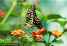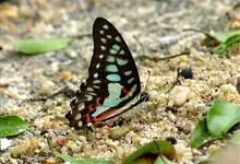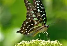 青带凤蝶Graphium sarpedon ,又名青凤蝶,是最普遍的中型凤蝶,飞行速度很快。青带凤蝶的翅膀中央有许多浅蓝色的斑点,很整齐地排列成一条直线。这些斑点由上而下逐渐变大,就像一条青色的带子。全部>>