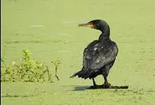 普通鸬鹚是属于鲣鸟目鸬鹚科鸬鹚属鸟类,又名水老鸦、鱼鹰、乌鬼、黑鱼郎等。体长720—900毫米,雌雄同型。通体黑色,有绿褐色金属光泽;喙厚重,喙基和喉囊橙黄色,脸颊及喉白色;夏羽颈及头饰具白色丝状羽,…全部>>