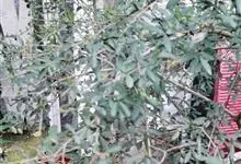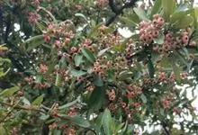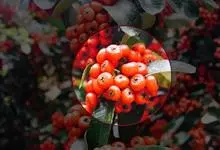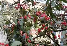 火棘 H. L. Li)是蔷薇科火棘属常绿灌木,老枝呈暗褐色;叶片呈倒卵形,边缘有钝锯齿,齿尖向内弯,两面皆无毛;叶柄短,无毛或嫩时有柔毛;花序是复伞房状,花瓣呈白色近圆形;果球近圆形,…全部>>