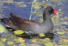 黑水鸡:是鹤形目、秧鸡科的鸟类,共有12个亚种。中型涉禽,体长24-35厘米。嘴长度适中,鼻孔狭长;头具额甲,后缘圆钝;嘴和额甲色彩鲜艳。翅圆形,第2枚初级飞羽最长,或第2枚和第3枚初级飞羽等长,…全部>>