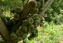 大果榕是桑科榕属的小乔木,株高可达10米;幼枝被柔毛;叶互生,宽卵状心形或近圆形;雄花无梗、匙形、花丝长,雌花生于雌株榕果内,子房白色;榕果簇生于树干基部或老茎短枝上、扁球形或陀螺形,…全部>>