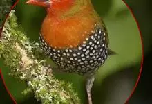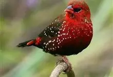 红梅花雀小型鸟类,体长9-10厘米。雄鸟通体朱红色,背、肩、胸等满布白色小斑点,两翅和尾黑褐色均具白色端斑,嘴红色,脚蜡黄色。雌鸟上体淡褐色或赭褐色,翅上中覆羽、大覆羽和内侧飞羽末端具白色斑点,…全部>>