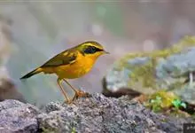 金色林鸲是鹟科、鸲属小型鸟类,体长12-15厘米。头顶至背黄橄榄绿色,眼先和头侧黑褐色,眉纹金橙黄色。肩、翅上小覆羽、腰、尾上覆羽和整个下体概为金橙黄色,两翅黑色。中央尾羽黑色,…全部>>