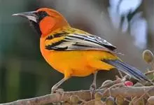 燕雀属小型鸟类,体长14-17厘米。嘴粗壮而尖,呈圆锥状。雄鸟从头至背辉黑色,背具黄褐色羽缘。腰白色,颏、喉、胸橙黄色,腹至尾下覆羽白色,两胁淡棕色而具黑色斑点。两翅和尾黑色,翅上具白斑。…全部>>