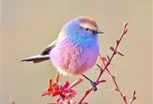 凤头雀莺:小型鸟类。体长9-10厘米,雄鸟呈毛茸茸的紫色和绛紫色,顶冠淡紫灰色,额及凤头白色,尾全蓝。雌鸟喉及上胸白,至臀部渐变成淡紫色,耳羽灰,…全部>>
