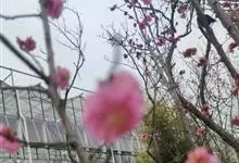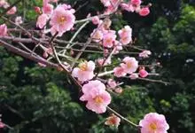 宫粉梅 Rehd.)是蔷薇科、李属植物,梅花品系中真梅系直枝梅类宫粉型,其花复瓣至重瓣,呈或深或浅的红色。落叶乔木,高达10米。树干褐紫色,有纵驳纹,小枝细而无毛,多为绿色。叶广卵形至卵形,…全部>>