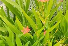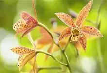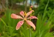 射干 Redouté)是鸢尾科射干属多年生草本植物。根状茎为不规则的块状,斜黄色或黄褐色;花橙红色,散生紫褐色的斑点;花药呈条形;子房下位,倒卵形;蒴果倒卵形或长椭圆形;种子圆球形,黑紫色,有光泽。…全部>>
