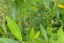 夜香树是茄科、夜香树属直立或近攀援状灌木。枝条细长而下垂。叶有短柄,叶片矩圆状卵形或矩圆状披针形,全缘,顶端渐尖,基部近圆形或宽楔形,两面秃净而发亮,有6-7对侧脉。伞房式聚伞花序,腋生或顶生,…全部>>