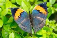 枯叶蛱蝶,又名木叶蝶、树叶蝶等,属于蛱蝶科。翅正面黑褐色,具深蓝色光泽,前翅顶角尖出,顶区有1枚小白点,中部有1条倾斜的橙色斑带,从前缘延伸至Cu室外缘,u室中部有1枚黑色圆斑,…全部>>