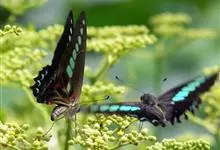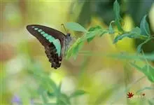 青带凤蝶Graphium sarpedon ,又名青凤蝶,是最普遍的中型凤蝶,飞行速度很快。青带凤蝶的翅膀中央有许多浅蓝色的斑点,很整齐地排列成一条直线。这些斑点由上而下逐渐变大,就像一条青色的带子。全部>>