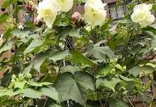 木芙蓉,锦葵科木槿属落叶灌木或小乔木。小枝上有细绒毛;叶片为卵状心形,托叶为披针形,常早落;花单生,花萼为钟形,花冠初为白色或淡红色,后逐渐变为深红色;果实为扁球形,有淡黄色的毛附着。花期8到10月。…全部>>