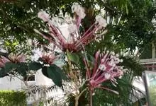 烟火树 Merr.)是唇形科、大青属常绿灌木或小乔木,株高可达4米。幼枝方形,墨绿色。叶对生,长椭圆形或披针形,先端尖,全缘或波状缘。纸质,叶背暗紫红色。聚伞状圆锥花序,顶生,小花多数,聚生成团,…全部>>