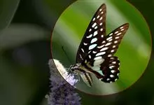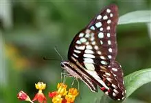 青带凤蝶Graphium sarpedon ,又名青凤蝶,是最普遍的中型凤蝶,飞行速度很快。青带凤蝶的翅膀中央有许多浅蓝色的斑点,很整齐地排列成一条直线。这些斑点由上而下逐渐变大,就像一条青色的带子。全部>>