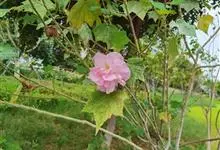 木芙蓉,锦葵科木槿属落叶灌木或小乔木。小枝上有细绒毛;叶片为卵状心形,托叶为披针形,常早落;花单生,花萼为钟形,花冠初为白色或淡红色,后逐渐变为深红色;果实为扁球形,有淡黄色的毛附着。花期8到10月。…全部>>