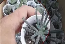棒叶落地生根是景天科、落地生根属植物。茎直立、粉褐色。叶圆棒形,上表面有沟、粉色,有红褐斑。叶片交互对生,交叉排列成十字形。叶端锯齿上长有很小的幼株、落地后即可生根成活。原产非洲马达加斯加。…全部>>