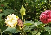 木芙蓉,锦葵科木槿属落叶灌木或小乔木。小枝上有细绒毛;叶片为卵状心形,托叶为披针形,常早落;花单生,花萼为钟形,花冠初为白色或淡红色,后逐渐变为深红色;果实为扁球形,有淡黄色的毛附着。花期8到10月。…全部>>