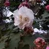 木芙蓉,锦葵科木槿属落叶灌木或小乔木。小枝上有细绒毛;叶片为卵状心形,托叶为披针形,常早落;花单生,花萼为钟形,花冠初为白色或淡红色,后逐渐变为深红色;果实为扁球形,有淡黄色的毛附着。花期8到10月。…全部>>