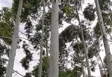 柠檬桉,又名“油加利树”“尤加利树”,是桃金娘科、桉属的常绿大乔木。树高28m,树皮光滑;幼态叶片披针形,有腺毛,基部圆形,叶柄盾状着生,成熟叶片狭披针形;圆锥花序腋生,花蕾长倒卵形;蒴果壶形,…全部>>