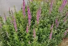 千屈菜是千屈菜科千屈菜属的多年生草本植物;根茎粗壮;叶披针形或宽披针形,无柄;花序簇生,呈聚伞状,花梗及花序梗甚短,花枝似一大型穗状花序,红紫色或淡紫色,苞片宽披针形或三角状卵形;果实为蒴果,扁圆形。…全部>>