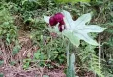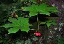 八角莲 M. Cheng)小檗科鬼臼属的多年生草本。植株高40~150厘米;根状茎直立,不分枝,无毛,淡绿色;叶互生,薄纸质,呈盾状,叶脉明显隆起,边缘有细齿;花深红色,5~8朵簇生于叶下方,下垂,…全部>>