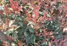 红叶石楠 是蔷薇科,石楠属杂交种,为常绿小乔木或灌木,乔木高可达5米、灌木高可达2米。叶片革质,长圆形至倒卵状、披针形,叶端渐尖,叶基楔形,叶缘有带腺的锯齿,花多而密,复伞房花序,花白色,梨果黄红色,…全部>>