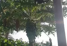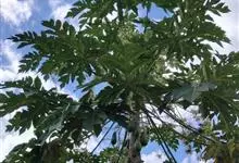 番木瓜,番木瓜科番木瓜属的常绿软木质小乔木,高达10米,具有乳汁;茎不分枝或有时于损伤处分枝;叶大且聚生于茎顶,近似盾形,叶柄中空;花单性或两性,有些品种雄株偶尔生两性花或雌花,…全部>>