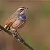 蓝点颏亦称“蓝喉歌鸲”,通称蓝靛颏儿。身体大小和麻雀相似,体长12-13厘米,体重17-18克。头部、上体主要为土褐色。眉纹白色。尾羽黑褐色,基部栗红色。颏部、喉部辉蓝色,下面有黑色横纹。下体白色。…全部>>