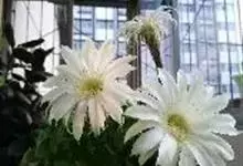 仙人球花 仙人掌科,仙人球属。植株单生或成丛。幼株球形,老株长成圆筒状,高可达75厘米,直径12-15厘米。球体暗绿色,具棱11-12。刺锥状,黑色,长1-1.5厘米。花着生于球体侧方,大型嗽喇叭状…全部>>
