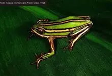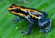 箭毒蛙,是无尾目箭毒蛙科箭毒蛙属动物。箭毒蛙体形较小,一般长1-6厘米,身上的颜色多为黑色与红色、黄色、橙色、绿色等;皮肤内有粘液分泌腺,能使皮肤随时保持湿润;四肢布满鳞纹;足间无蹼。…全部>>