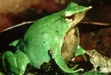 树蛙是树蛙科两栖动物的统称。树蛙体中等或大,一般雄蛙吻端斜尖,雌蛙吻端高钝;舌后端缺刻深,梨骨齿发达,鼓膜明显,指间有蹼或蹼发达,趾间近全满蹼,外侧跖较发达;鼻骨小、蝶筛骨显露,额顶宽或宽短,…全部>>