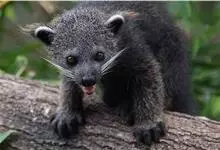 熊狸别名熊灵猫,为灵猫科下的第二大物种。貌似小黑熊,长着一条与身长差不多长的粗壮尾巴。其体毛黑色蓬松,杂有浅棕黄色。耳端的簇毛长达5厘米,耳缘白色。四肢粗壮,…全部>>