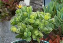熊童子是景天科,银波锦属的多年生肉质草本植物,植株多分枝,茎绿色,肉质叶肥厚,交互对生,卵圆形,绿色,密生白色短毛。叶端具红色爪样齿,二歧聚伞花序,小花黄色,花期7-9月。该种原产于南非开普省。…全部>>